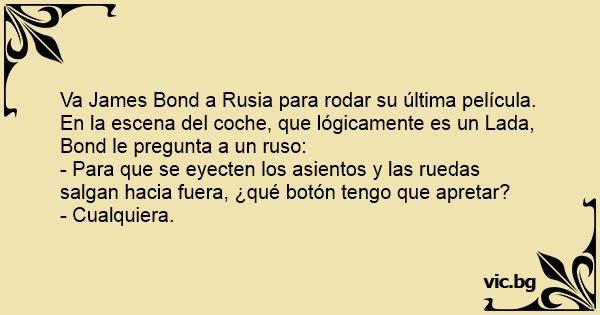 Va James Bond a Rusia para rodar su última película. En la escena del coche, que lógicamente es un Lada, Bond le pregunta a un ruso: