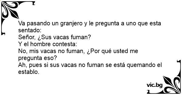 Papá, ¿las vacas fuman? ¡No, hijo! ¡Entonces, se está quemando el establo!
