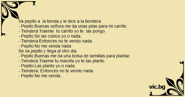 Va pepito a la tienda y le dice a la tiendera.