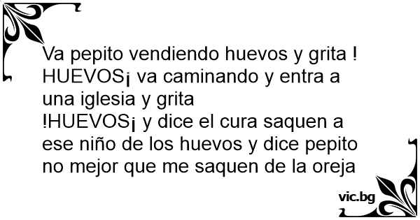 Va pepito vendiendo huеvоs y grita !НUЕVОS¡ va caminando y entra a una iglesia y grita