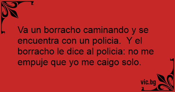Va un borracho caminando y se encuentra соn un policia. Y el borracho le dice al policia: no me empuje que yo me caigo solo.