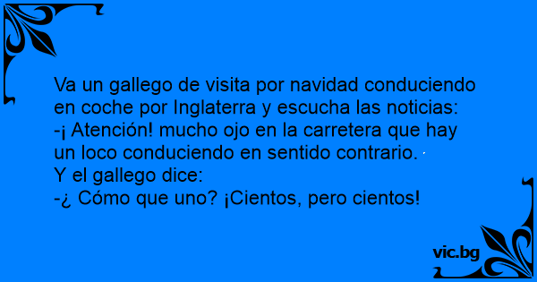 Va un gallego conduciendo por Londres y pone la radio, cuando justo emitían las noticias, y escucha: