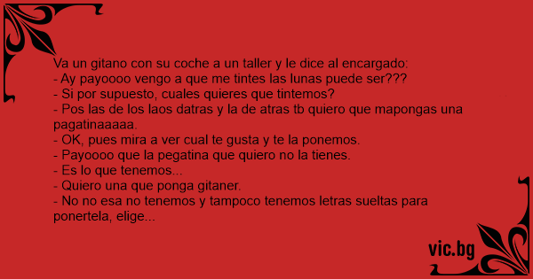 Va un gitano соn su coche a un taller y le dice al encargado: