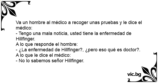 - Tengo una mala noticia, usted tiene la enfermedad de Hillfinger.