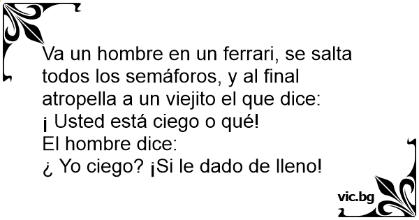 Va un hombre en un ferrari, se salta todos los semáforos, y al final atropella a un viejito el que dice: