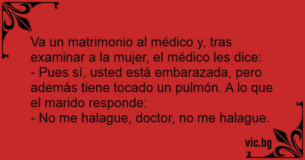 - Pues sí, usted está embarazada, pero además tiene tocado un pulmón. A lo que el marido responde: