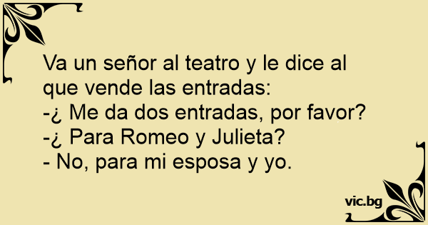 - Два билета моля. - За Ромео и Жулиета ли? - Не, за мен и за жена ми