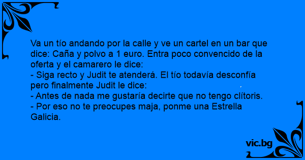 Va un tío andando por la calle y ve un cartel en un bar que dice: Caña y polvo a 1 euro. Entra poco convencido de la oferta y el camarero le dice: