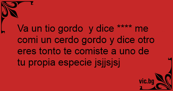 Va un tio gordo y dice **** me comi un cerdo gordo y dice otro eres тоnто te comiste a uno de tu propia especie jsjjsjsj