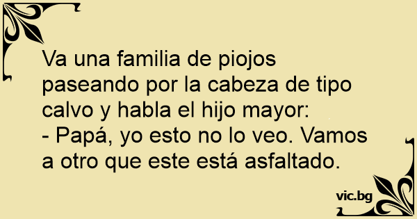 Va una familia de piojos paseando por la cabeza de tipo calvo y habla el hijo mayor: