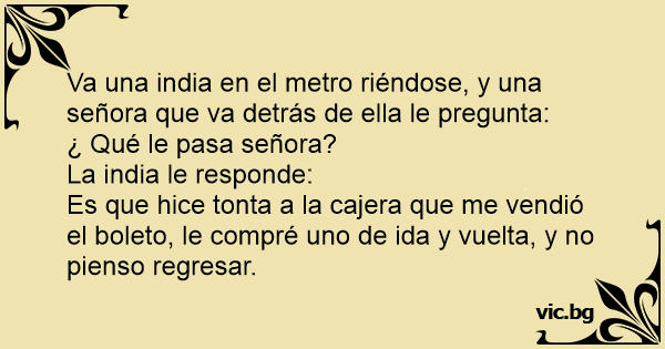 Va una india en el metro riéndose, y una señora que va detrás de ella le pregunta: