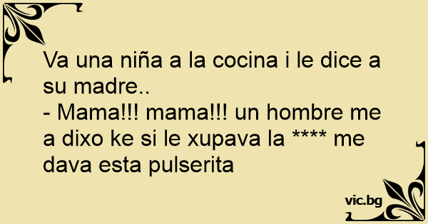 - Mama!!! mama!!! un hombre me a dixo ke si le xupava la **** me dava esta pulserita