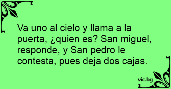 Va uno al cielo y llama a la puerta, ¿quien es? San miguel, responde, y San pedro le contesta, pues deja dos cajas.
