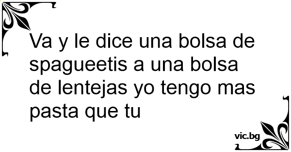 Va y le dice una bolsa de spagueetis a una bolsa de lentejas yo tengo mas pasta que tu