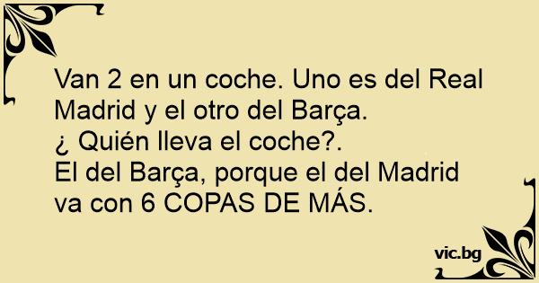 Van 2 en un coche. Uno es del Real Madrid y el otro del Barça.