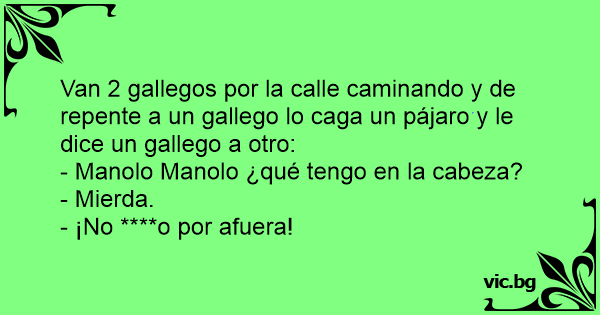 Van 2 gallegos por la calle caminando y de repente a un gallego lo caga un pájaro y le dice un gallego a otro: