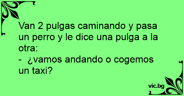 Dos pulguitas se encuentran en una esquina, una le dice a la otra: Vamos a tomar un café al centro. La otra le responde: ¿ Vamos a pie o tomamos un perro?