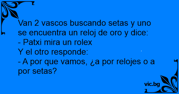 Van 2 vascos buscando setas y uno se encuentra un reloj de oro y dice: