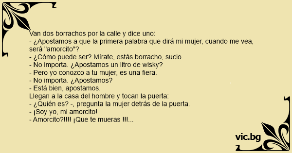 - ¿Apostamos a que la primera palabra que dirá mi mujer, cuando me vea, será "amorcito"?