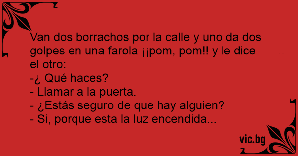 Van dos borrachos por la calle y uno da dos golpes en una farola ¡¡pom, pom!! y le dice el otro: