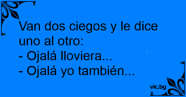 Van dos ciegos y le dice uno al otro: - Ojalá lloviera... - Ojalá yo también...