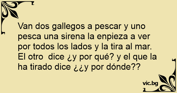 Van dos gallegos a pescar y uno pesca una sirena la enpieza a ver por todos los lados y la tira al mar.