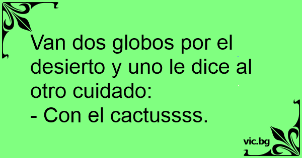 Una vez andaba mamá globo con su hijo globito paseando por el desierto. En eso, el hijo globito le dice a su mamá: ¡ Mamá, mamá, mira un cactusssssssssssssssssssssssssssssssss...........!