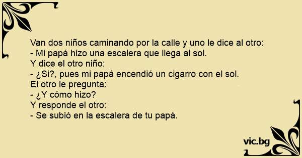 - ¿Si?, pues mi papá encendió un cigarro соn el sol.