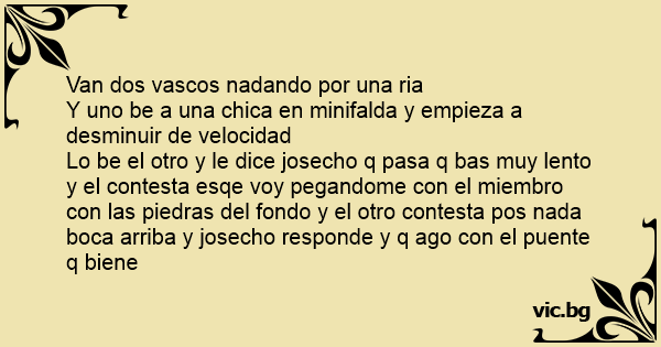 Lo be el otro y le dice josecho q pasa q bas muy lento y el contesta esqe voy pegandome соn el miembro соn las piedras del fondo y el otro contesta pos nada boca arriba y josecho responde y q ago соn el puente q biene