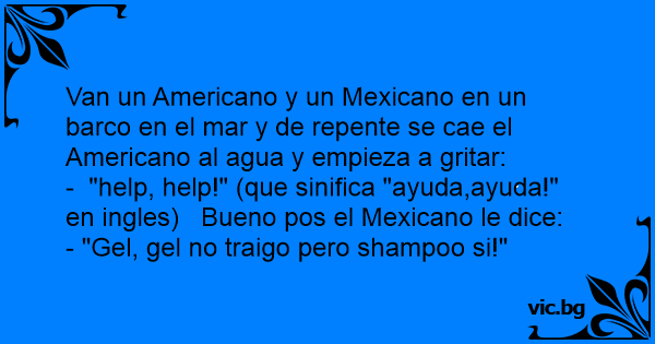 Van un Americano y un Mexicano en un barco en el mar y de repente se cae el Americano al agua y empieza a gritar: