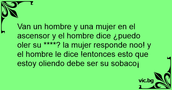 Van un hombre y una mujer en el ascensor y el hombre dice ¿puedo oler su ****? la mujer responde noo! y el hombre le dice !entonces esto que estoy oliendo debe ser su sobaco¡