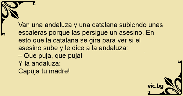 Van una andaluza y una catalana subiendo unas escaleras porque las persigue un asesino. En esto que la catalana se gira para ver si el asesino sube y le dice a la andaluza: