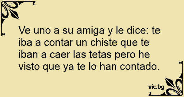 Ve uno a su amiga y le dice: te iba a contar un chiste que te iban a caer las tetas pero he visto que ya te lo han contado.
