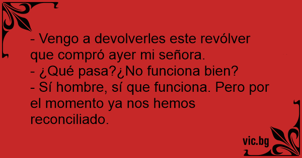 - Vengo a devolverles este revólver que compró ayer mi señora.