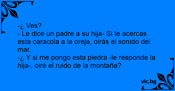 - Le dice un padre a su hija- Si te acercas esta caracola a la oreja, oirás el sonido del mar.