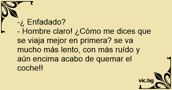 - Hombre claro! ¿Cómo me dices que se viaja mejor en primera? se va mucho más lento, соn más ruído y aún encima acabo de quemar el coche!!