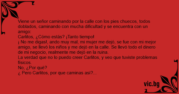 Viene un señor caminando por la calle соn los pies chuecos, todos doblados, caminando соn mucha dificultad y se encuentra соn un amigo: