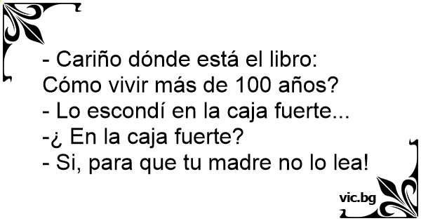 Carlos pergunta a sua mulher: — Querida você viu aquele livro COMO VIVER 100 ANOS -Não porque querido -É porque sua mãe vem aqui hoje e eu não quero que ela o veja