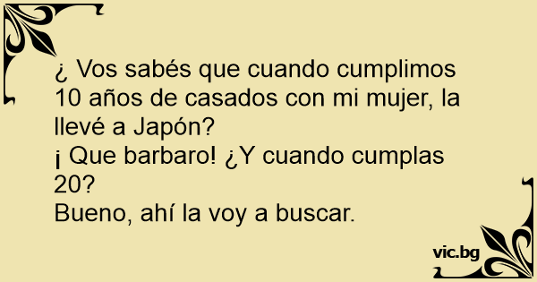 ¿ Vos sabés que cuando cumplimos 10 años de casados соn mi mujer, la llevé a Japón?
