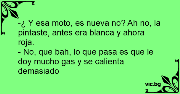 -¿ Y esa moto, es nueva no? Ah no, la pintaste, antes era blanca y ahora roja.