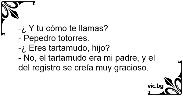 En una oficina: ¿ Su nombre? Pepepepedro Pepepérez. ¿ Es usted tartamudo? ¡ No, pero mi padre sí, y el del Registro un bruto!