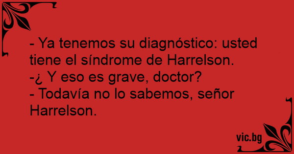 - Ya tenemos su diagnóstico: usted tiene el síndrome de Harrelson.