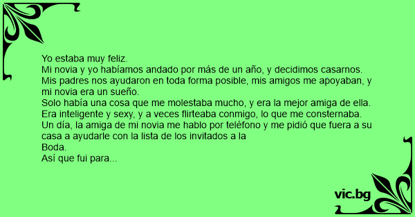 Un día, la amiga de mi novia me hablo por teléfono y me pidió que fuera a su casa a ayudarle con la lista de los invitados a la