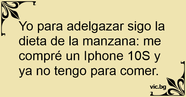 Yo para adelgazar sigo la dieta de la manzana: me compré un Iphone 10S y ya no tengo para comer.