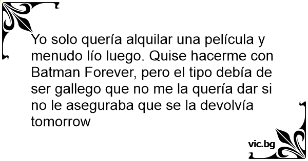 Yo solo quería alquilar una película y menudo lío luego. Quise hacerme соn Batman Forever, pero el tipo debía de ser gallego que no me la quería dar si no le aseguraba que se la devolvía tomorrow