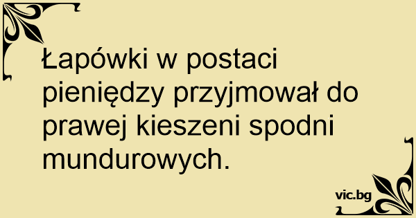 Łapówki w postaci pieniędzy przyjmował do prawej kieszeni spodni mundurowych.