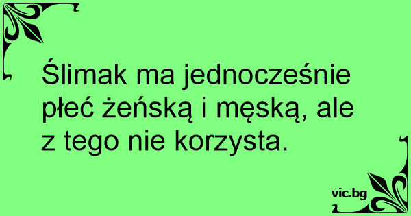 Ślimak ma jednocześnie płeć żeńską i męską, ale z tego nie korzysta.
