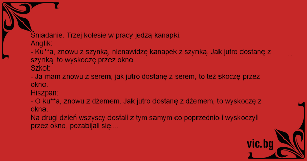 Na drugi dzień wszyscy dostali z tym samym co poprzednio i wyskoczyli przez okno, pozabijali się.