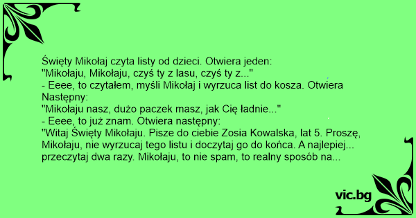 - Eeee, to czytałem, myśli Mikołaj i wyrzuca list do kosza. Otwiera