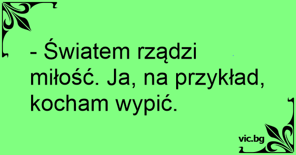 - Światem rządzi miłość. Ja, na przykład, kocham wypić.